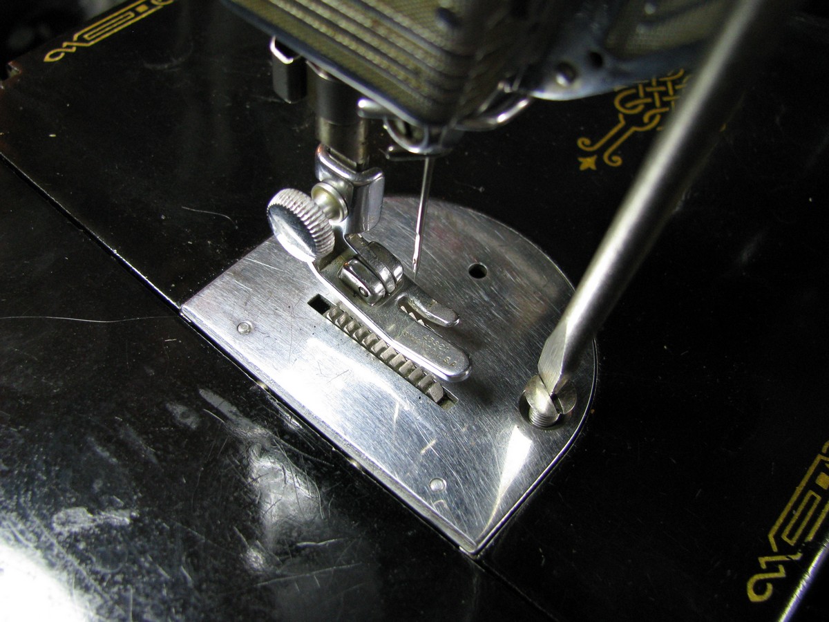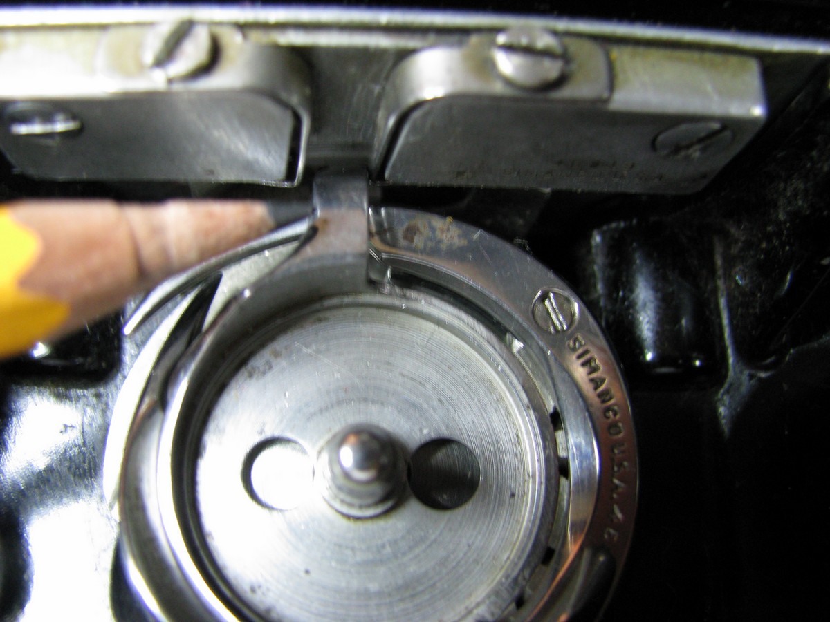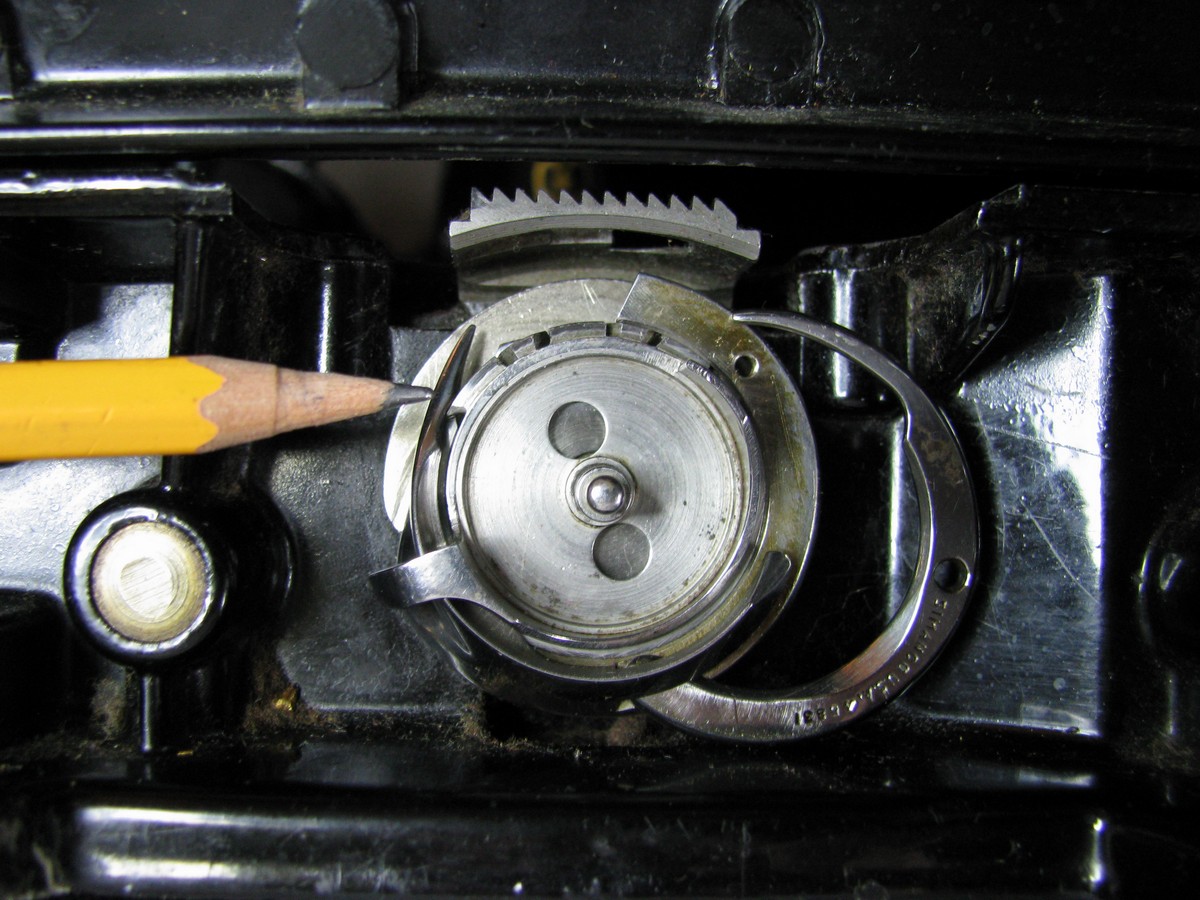 With Bobbin Case removed, remove this small screw (called the Rotating Hook Gib screw)