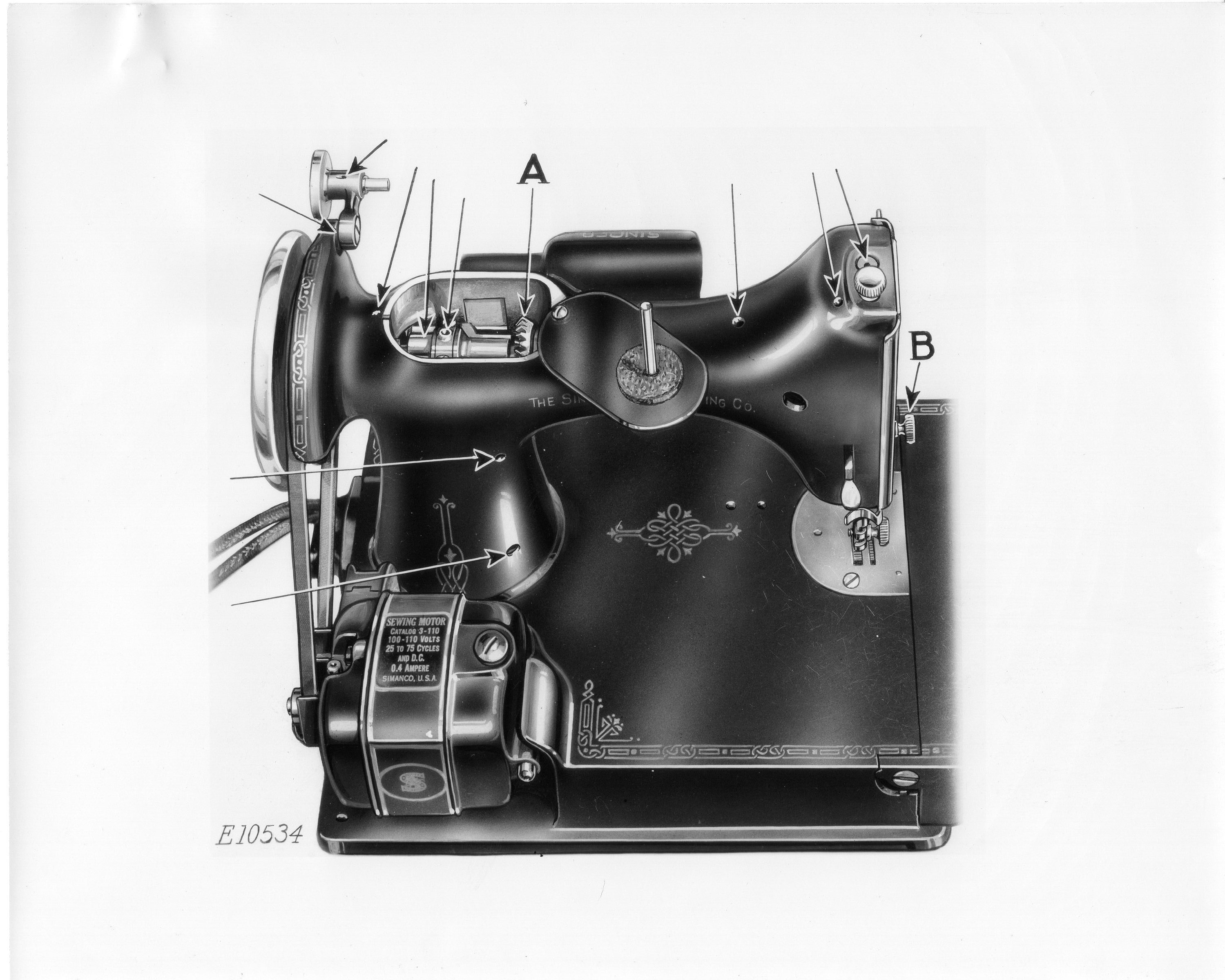 PICTURE # E10534 Page 24 Was used in EVERY MANUAL from NOVEMBER 1933 up till the (752) Manual...EXCEPT For one little Problem. CANADA. They didn't like the American all Metal Motor. SO! Singer tried to appease them with an American Built BAKELITE Motor. TODAY the Motor is so Rare I don't even speak of it. But you can find them on Some AH SERIES Machines. ALSO Singer even made an American 221 Manual for it..(SEE PICTURES BELOW.) Funny thing the Manuals are found in Canada and the Two machines I have seen with the Bakelite motors are still in America with (747) Dated Manuals....