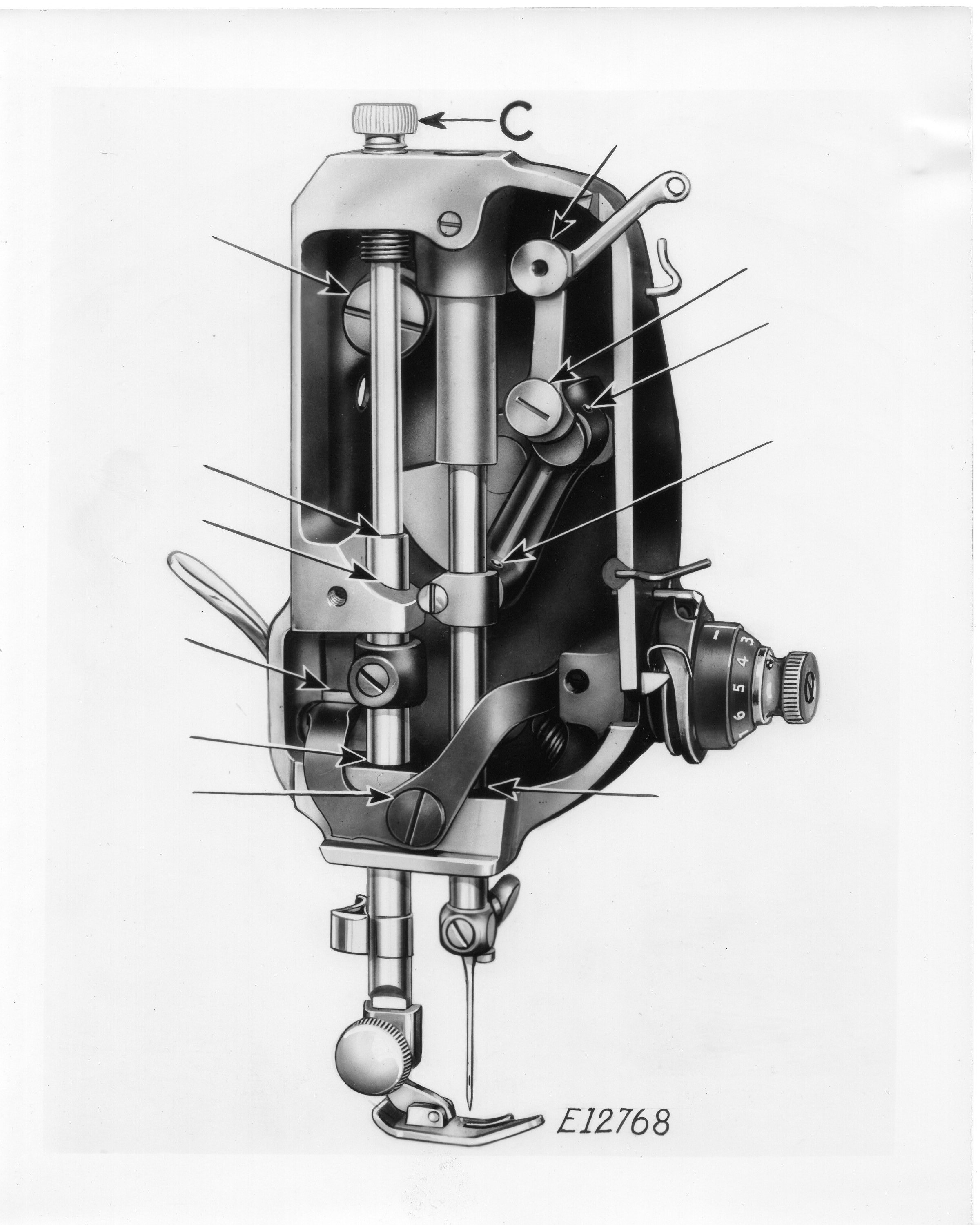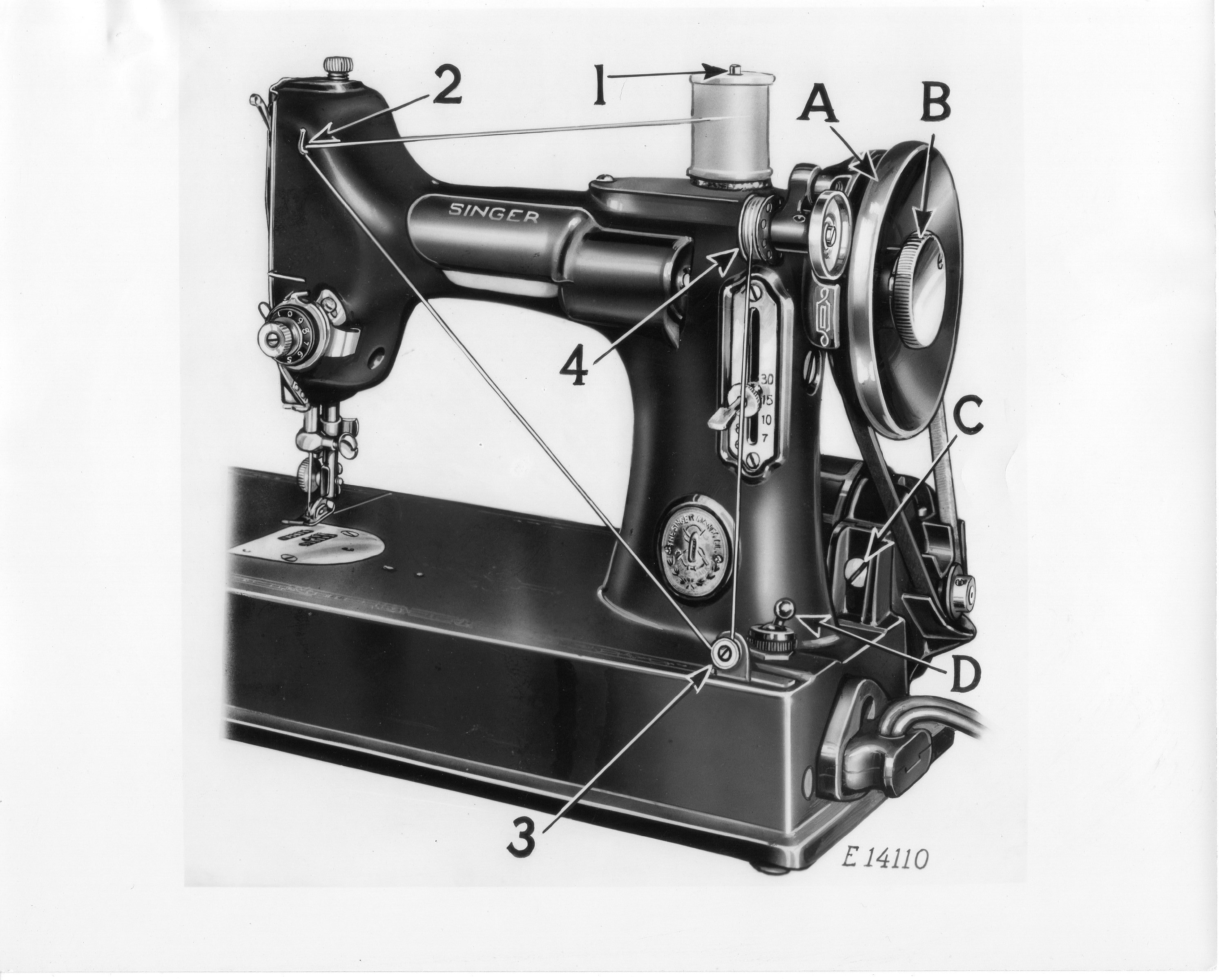 PICTURE # E14110 on Page 10 This is also A First picture for the (1038) Manual. IT would be Changed Again in the (641) Manual when Singer would LOWER the SINGER Decal on the Light ...