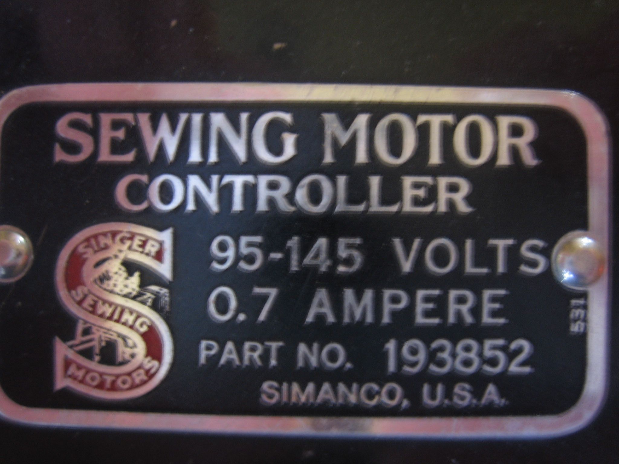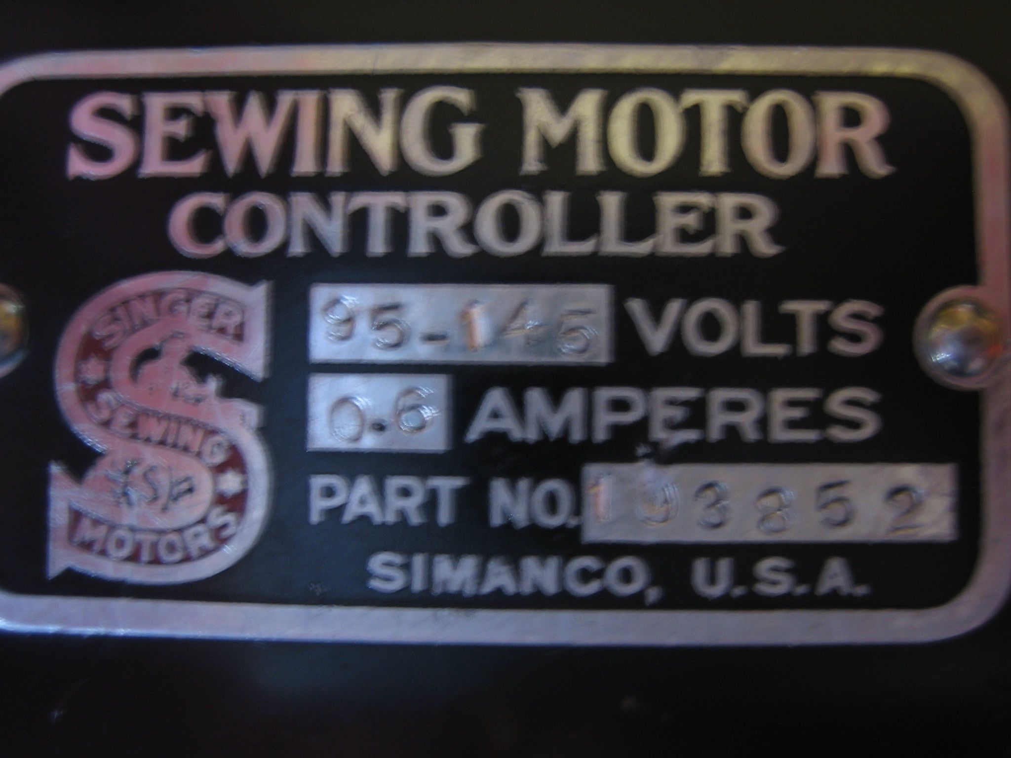 FOOT CONTROL: The EARLY First 200 or so Foot Control was # 193852 it was 0.6 AMP.