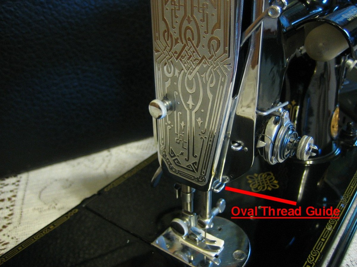 IN the next picture is a 1933-1934 STAGGER LEG Face Plate. NOTE the OVAL Thread Guide at the bottom. In Later 1934 and 1935 this Thread Guide was Straight....SO! The AD SERIES had TWO Different Face Plates...
