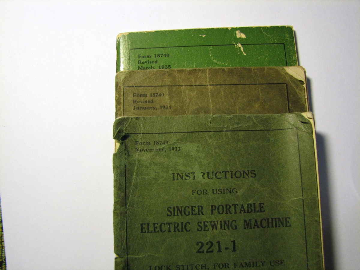 SINGER Made THREE 221 Manuals for the AD SERIES. The NOVEMBER 1933 is the rarest as there may have been 200 or so printed.