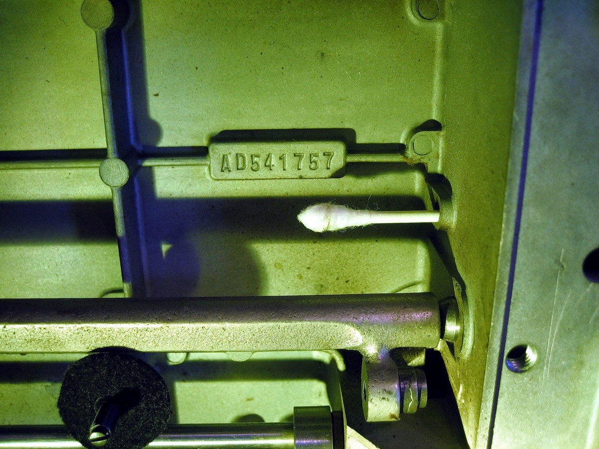 It was also secured with a 3/32 bolt.. NOW! I see reason # 2 for moving the serial number, from under the oil pan. This must have been a very time consuming manufacturing process.