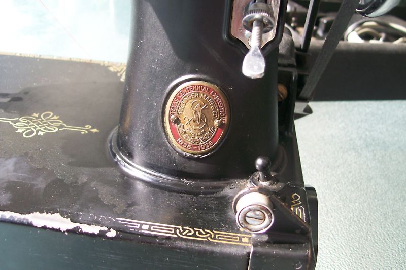 “A collectable's dealer who travels the Florida area spotted the Texas Centennial at an estate sale. He spoke with the woman selling her mom's estate; she had several Featherweights for sale, all of which he bought, but he'd never seen the Texas Centennial badge before. She said her mom purchased it at the fair and used it right up until 2000. I have a copy of the last servicing bill dated 2001. Not long after the 1936 fair, her mom moved to Florida.