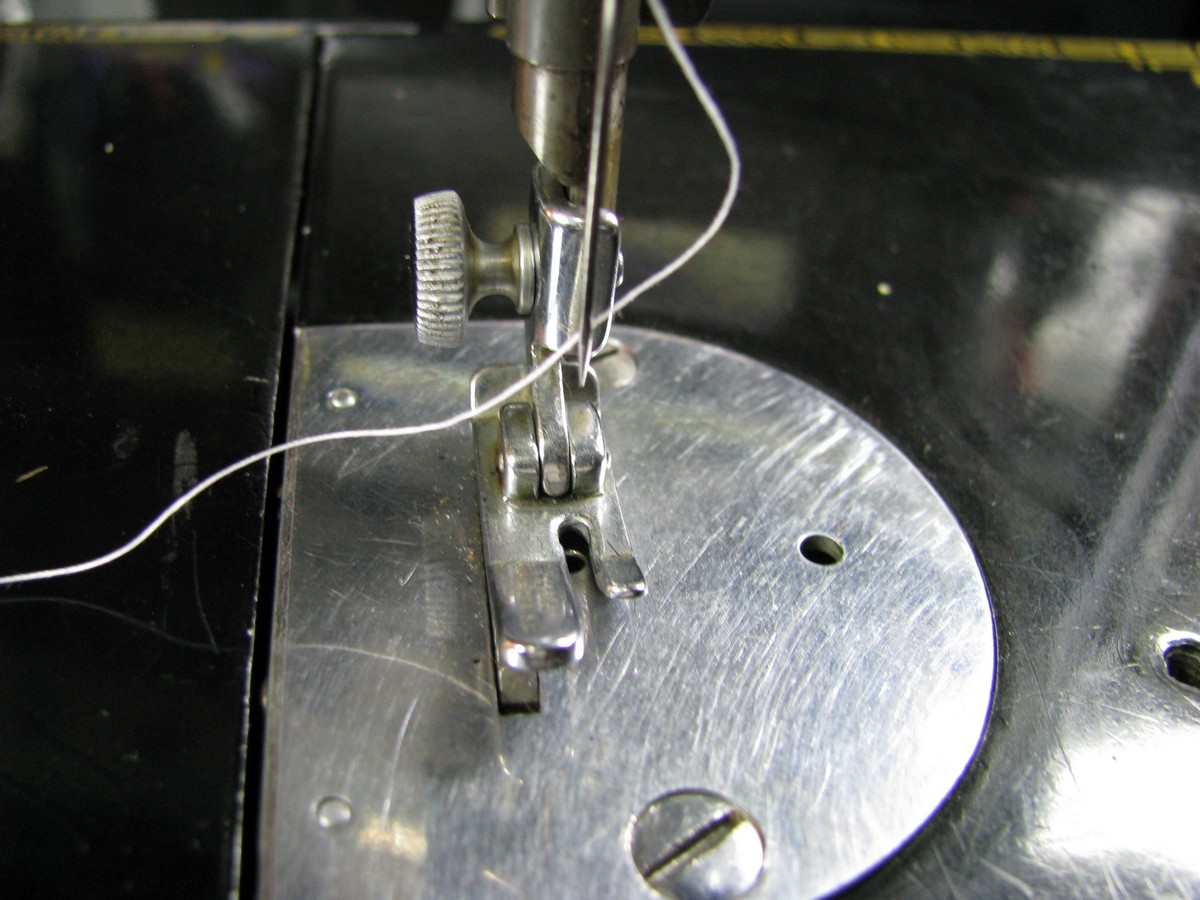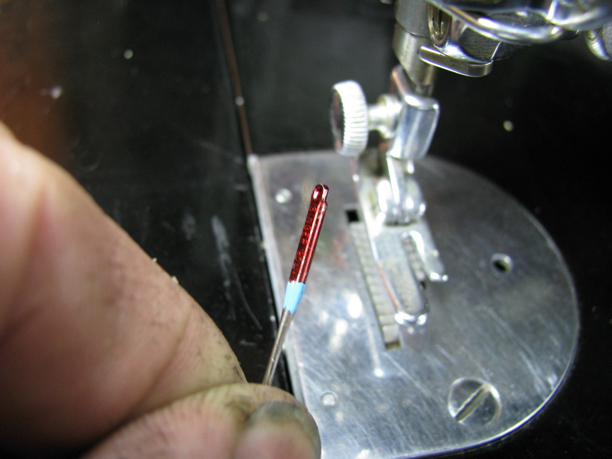 Showing proper threading of the needle.