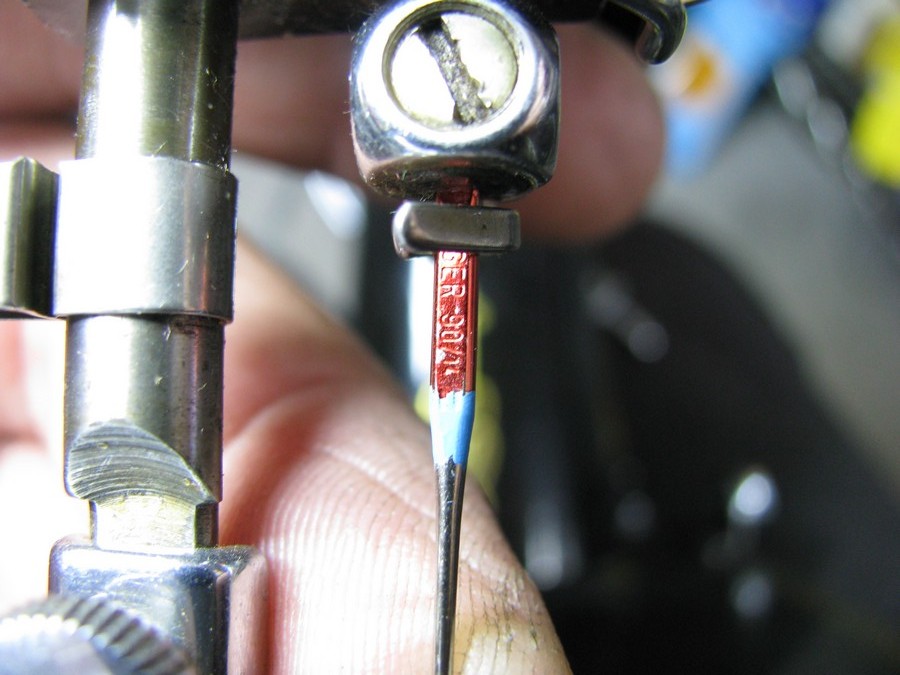 See below for the proper needle installation and the threading of the needle (Please pardon my dirty fingers in the photos!).