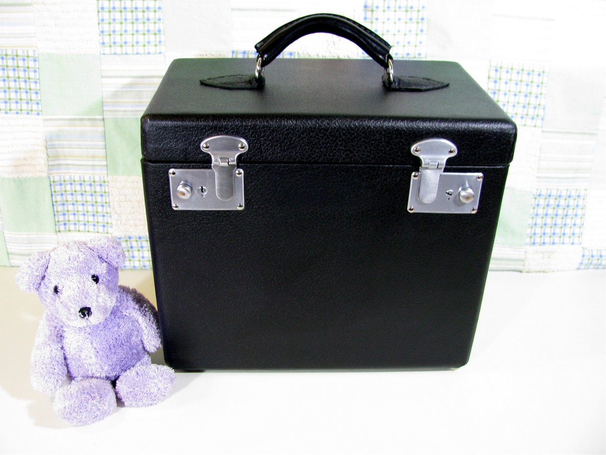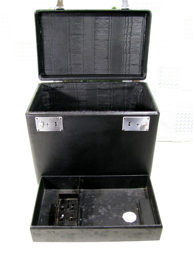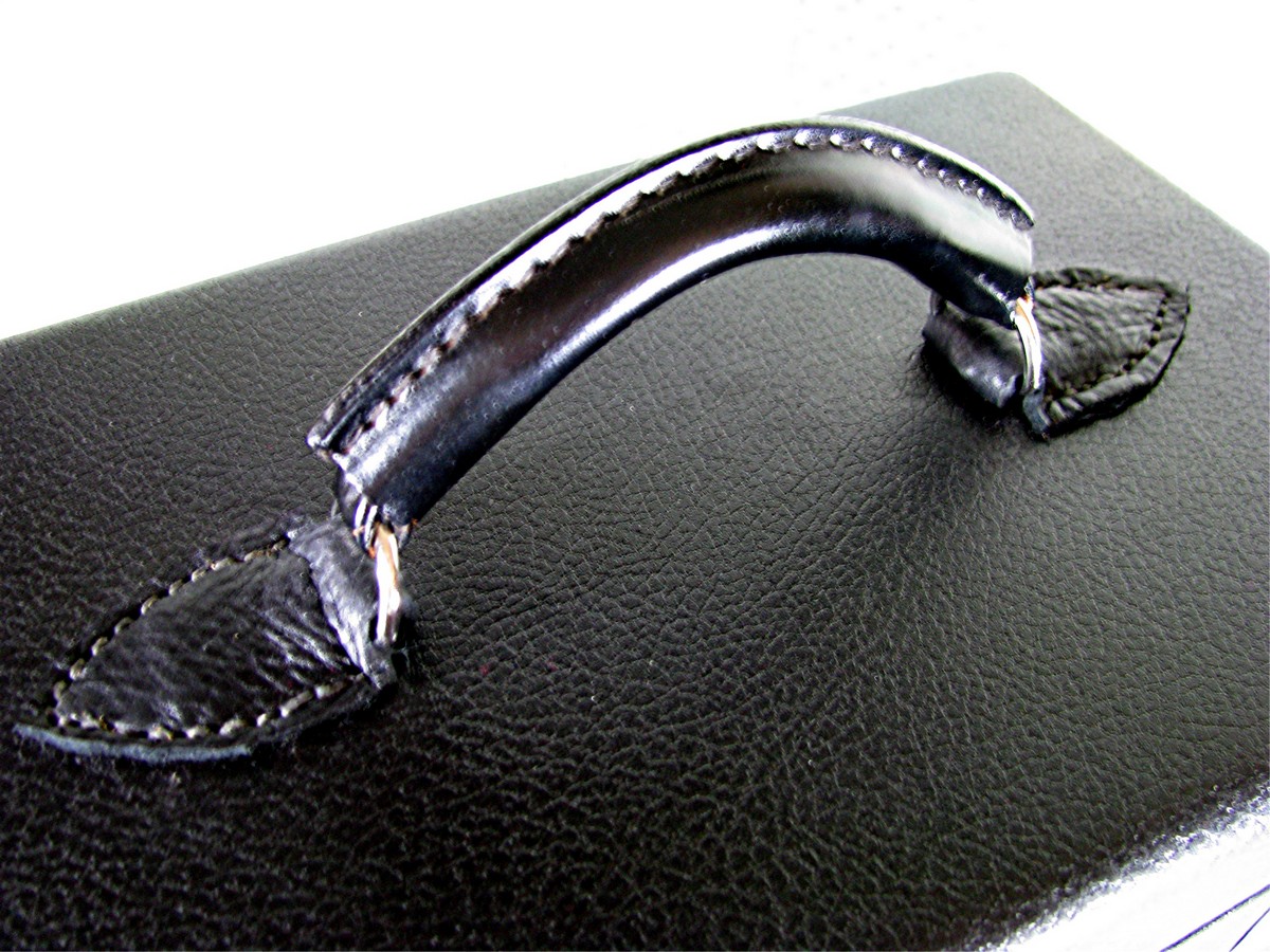 If it has a leather handle, I replace that with a nice leather one. I hand sew the leather patches that the "D" ring handles use, and that is sewn right through the wood lid! The only part that I do not restore is the inside case tray. I have always been able to clean them up very well.